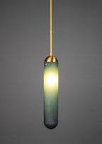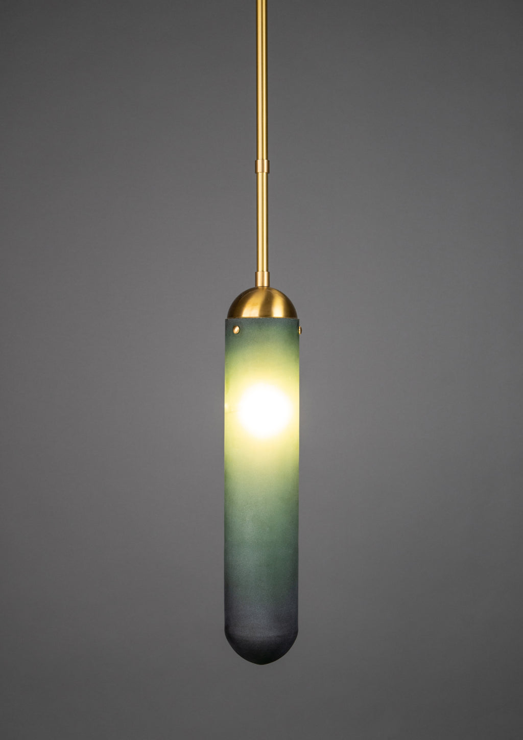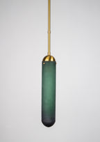 Ramus, Midcentury style Pendant, Satin Brass, Gently brushed and lacquered brass, Emerald Hand crafted glass, Adjustable Height, D100xH550mm, 1xE27. Regular collection model.